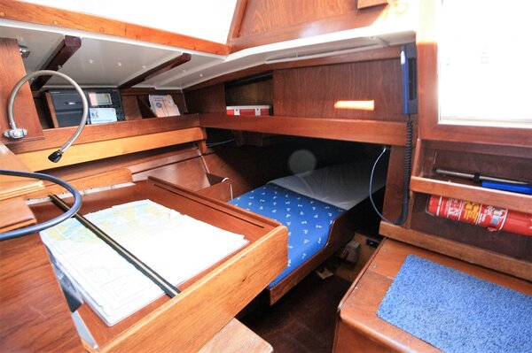 Waarschip 900 Altair is een snel zeilend familie schip met een luxe uitstraling. Aan boord valt direct het prachtige teakdek op, met mooi gelakte houten elementen. Binnen heerst een gezellige, nautische sfeer die met een hete lucht kachel wordt verwarmt. Altair heeft een klassieke indeling. In de salon zijn langsbanken met een tafel en er zijn voldoende bagage opberg mogelijkheden. Aan stuurboord is een kaartentafel met een extra bed en aan bakboord is de kombuis met 2 kookpitten en de benodigde opbergruimte. Genoeg ruimte voor alle opvarenden. Verder naar voren in het schip is een hut met een tweepersoonsbed, toilet met opberg en kledingkasten. Compleet uitgerust voor 5 personen. Diesel 3 cyl 20 pk, rolfok, waterreservoir met voetpomp, anker. reddingsvesten, live-lines, snelheid log, diepte-, windmeter, plotter, boordverlichting, kaarten en ANWB almanak 1&2. 220V walaansluiting met elektronische acculader, 12 volt aansluiting en radio cd speler. Voorzien van een hedendaagse zeil uitrusting. Stahoogte is 1,90 meter. Opties zeilpakken, lakenpakket.